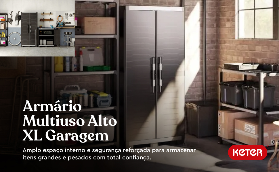 Com sua aparência robusta, fundo reforçado, dobradiças de metal e portas com trava, o Armário Baixo Garagem é a solução segura e ideal de armazenamento para áreas externas e garagem para criar o layout de armazenamento ideal para seus itens grandes e pesados. Fabricado em polipropileno, material duravél e resistente ao tempo e as intenpéries, este produto pode ficar exposto ao tempo e ainda manter a integridade dos objetos armazenados em seu interior.