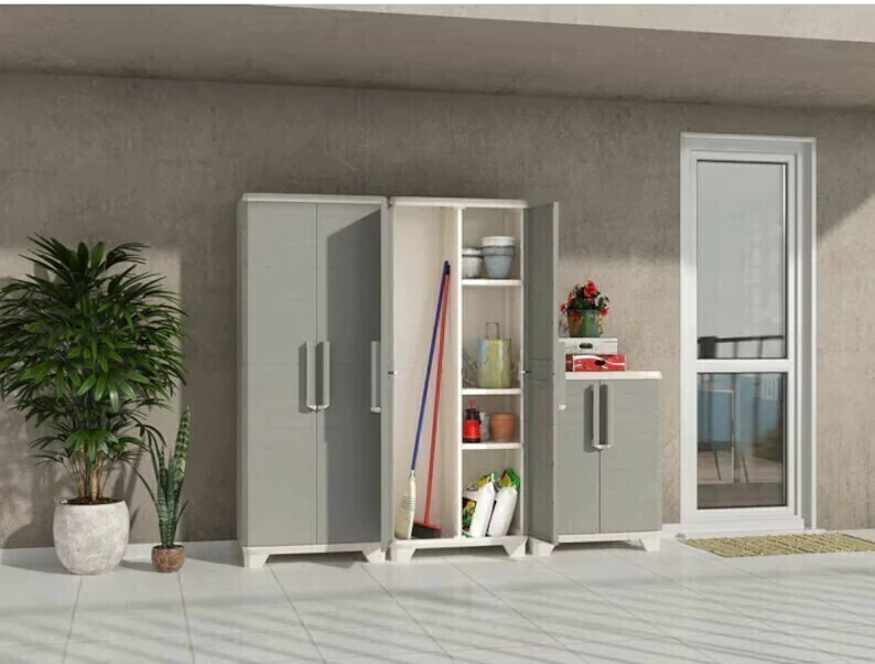 A linha Linear Wood com proteção UV agora está completa e disponível nos três modelos: o tradicional com prateleiras horizontais, o utilitário com espaço vertica e o baixo. O Armário Alto Wood é ideal para as áreas em torno de sua casa que não têm espaço de armazenamento. Na lavanderia, o armário é uma alternativa atraente para armazenar suprimentos domésticos e produtos de limpeza nas suas 4 prateleiras internas e empilháveis, com capacidade para até 15kg cada Tem portas robustas e pode ser facilmente trancado com um cadeado comum. Com um design compacto e elegante, ele pode ser colocado convenientemente em muitos locais ao redor de sua casa ou loja e é adequado para a maioria das áreas com deficiência de espaço. Dimensões externas aproximadas de 173 cm de altura, 68 cm de largura total e 39 cm de profundidade. Possui alta qualidade, fabricado com resina de polipropileno e tecnologia israelense, conta com proteção a raios UV, que oferece durabilidade imbatível. Confira as Deimensões do Produto Montado:
