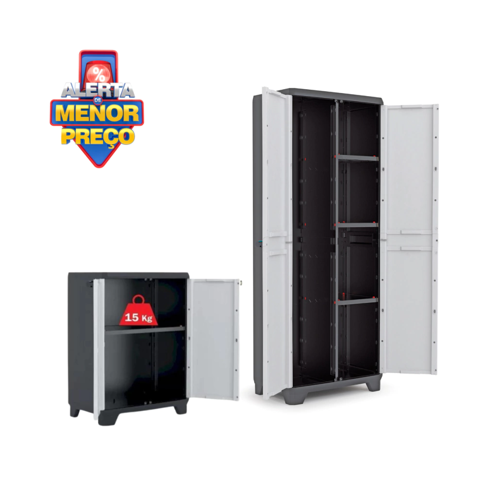 Este combo espetácular é fácil de montar, fácil de usar e de baixíssima manutenção e com um preço incrível. Todos os modelos da família de Armários Linear possuem portas com trava para maior segurança dos itens que você irá armazenar em seu interior.