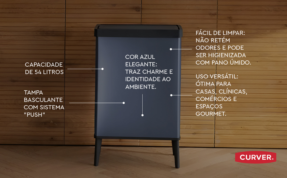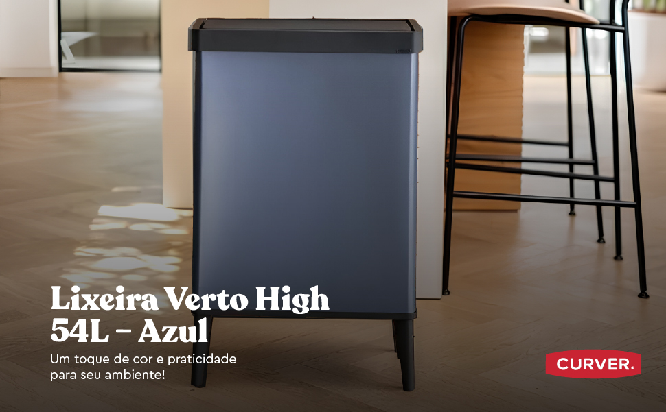 A Lixeira Verto 54L na cor azul é a escolha ideal para quem busca unir estilo, praticidade e responsabilidade ambiental. Seu design moderno e discreto permite o uso em cozinhas, lavanderias, áreas gourmet ou escritórios, sem comprometer a harmonia do ambiente.